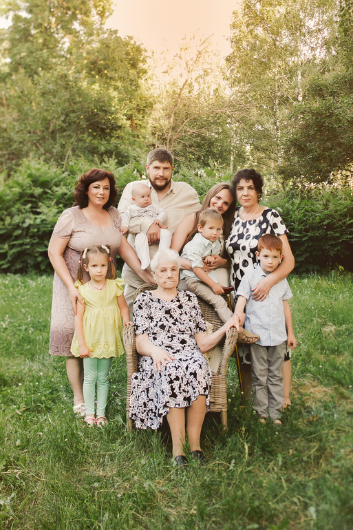 Главная цель у меня была - сделать красивое видео, как бы посыл от внуков бабушкам! А ведь это две бабушки и две прабабушки у наших деток, не часто такое встретишь! Поэтому больших трудов мне стоило уговорить/собрать/привезти этих бабуль в парк (самой старшей на тот момент был 91год), якобы для семейной фотосессии:![]()
