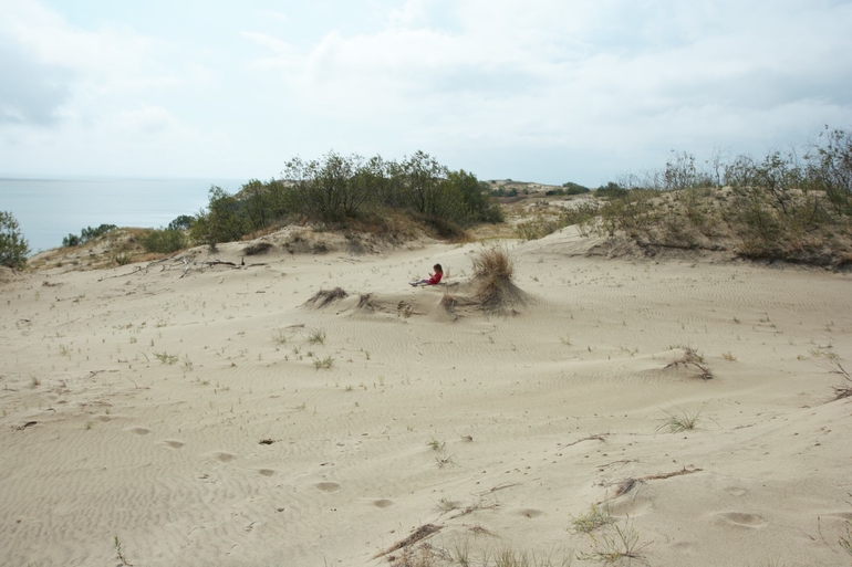 Мы пробыли на косе почти целый день и не могли оторваться. Ехали и останавливались тут и там. И каждая остановка - как новая вселенная! Лес с огромными корабельными соснами вдруг сменялся густым смешанным лесом, потом белыми песчаными дюнами, а то вдруг волшебным лесом с карликовыми арктическими соснами, где верхушки деревьев едва достают тебе до плеча.
