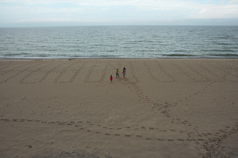 А вот и море, которым я так бредила в Калининграде. Кто-то поиграл поутру в гусеничку, вытаптывая смешную дорожку из отпечатков ног на берегу.