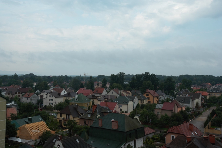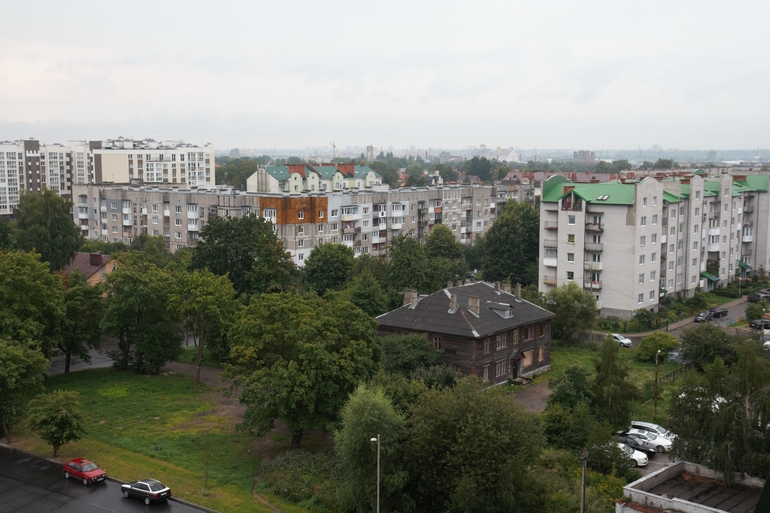 В Калининграде снимали апарты на одну ночь. Утром проснулись, выглянули в окно. Моросил небольшой дождик.