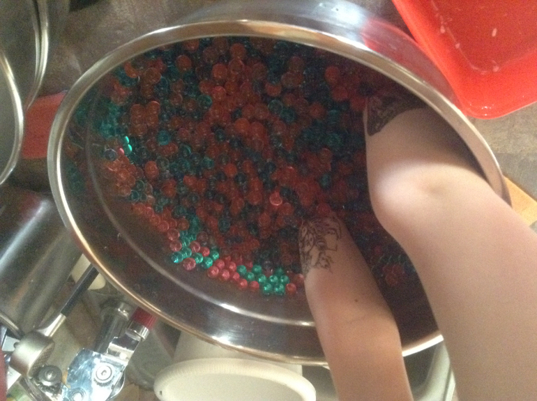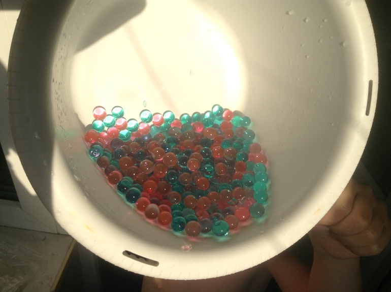 Поделки и развивашки (НЕ продажа)девочки, у кого есть маленькие детки - всем советую эту волшебную вещь! называется это гидрогель ;) это такие шарики (а есть еще пирамидки, фигурки), которые набирают в себя воду больше своего веса в 200 раз! они растут за несколько часов и из горошинок превращаются в приятнейшие на ощупь упругие шарики. дети заняты пару часов точно! они из насыпают в разные емкости, просто руками в них шуршат, раскладывают по цветам (кстати, они есть просто прозрачные и их совершенно не видно в воде в таком случае), пальчиками мнут и т.п! нам такие достались в наборе фокусов, а потом я стала искать их целенаправленно и кроме известных шариков Орбиз (дорогих вообще-то) нашла отличную им альтернативу по 75 рублей - гидрогель для садоводов ;)))) заказала на Озоне и парни мои счастливы ;) они не такие прям крупные, как Орбиз, но все-равно славные ;) всем советую! мелкую моторику развивает, тактильные ощущения инетресные дарит, воображение тоже развивает (мои их и красили, и уксусом заливали, и воду наливали такого же цвета, чтобы они пропали в ней)!