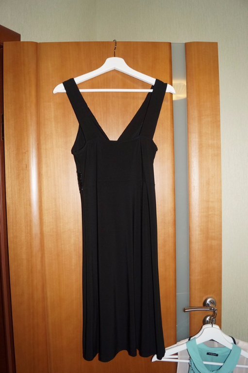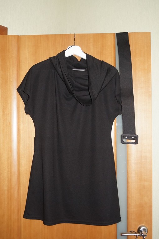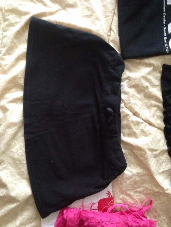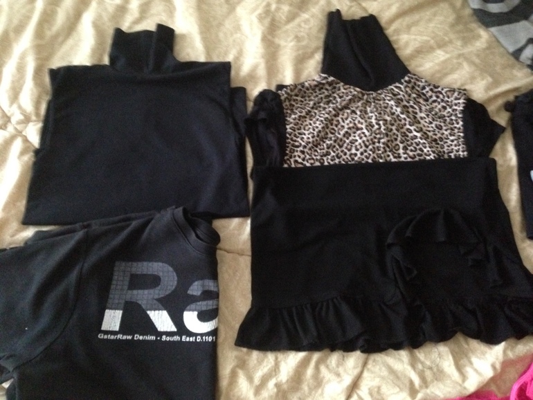 10. Две трикотажных водолазки без рукавов. И любимая юбка "латино". Юбка не мнется, очень красиво открывает одну ножку :) на фото еще попали две мужских черных футболки. Для дома подойдут на размер 46-48.