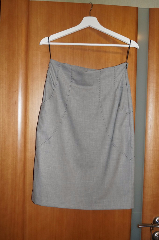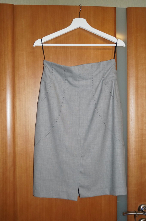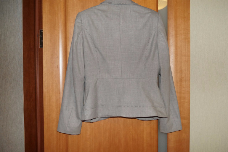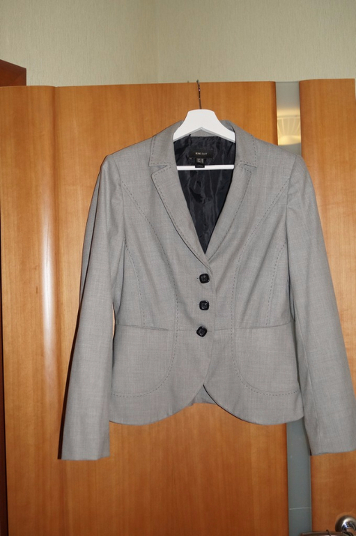 8. Деловой костюм фирмы Манго: пиджак и юбка карандаш. В институт ходить отличный вариант. Цвет красивый светлый серый. Юбка не ношена, с завышенной талией. Пиджак носила часто и он требует небольшого "ремонта" - нужно поправить подклад - тянет спинку. на фото видно, что край низа задирается.