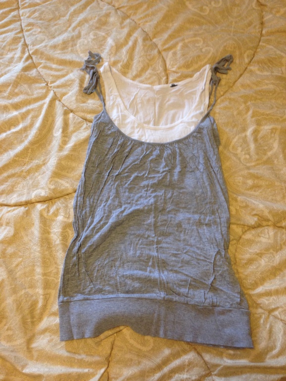 17. Двойная спортивная майка Манго, Б/у активно. Любила ее. Со спортивными штанами или джинсами летом. Хорошо скрывает "шарпей" на животе :) Размер 46.