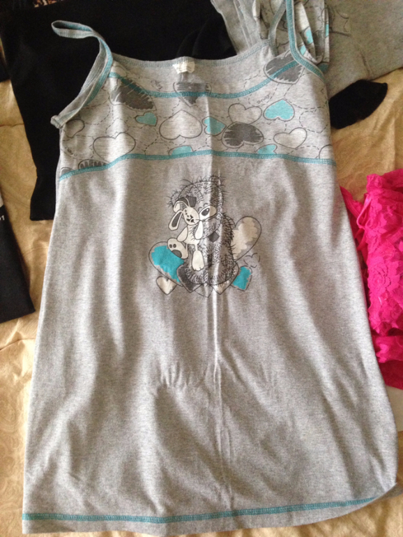 11. Домашний халат и ночнушка. С мишкой тедди. Б/у, но носить еще можно. Без пятен. Пользовалась комплектом дважды в роддоме. на 44-46 размер. Юбка х/б черный цвет. Тоже покупала для дома. Одевала пару раз.