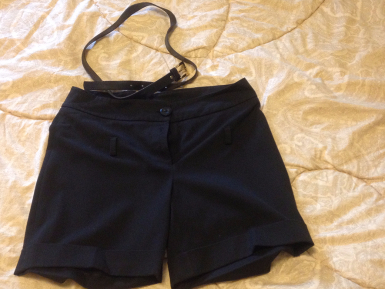 20. Классические шорты - стрейч с поясом. На попу 44-46 размера. Цвет черный. Состояние хорошее.