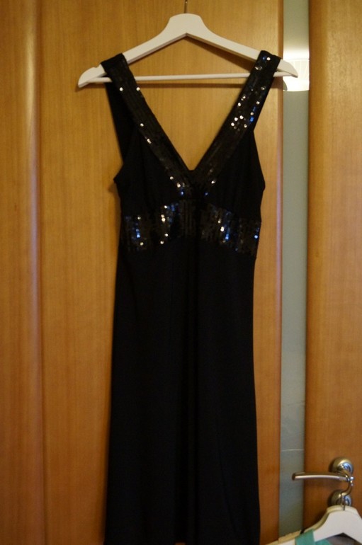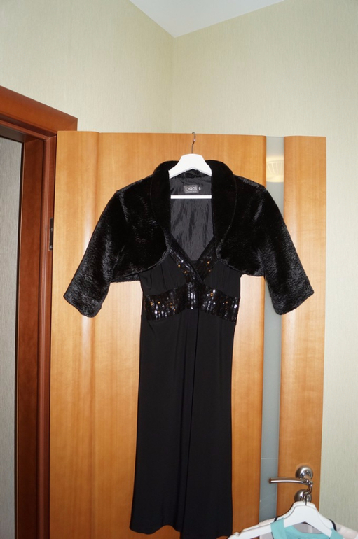 5. Вечернее платье и болеро. Классное платье для девушек с грудью :) Не мнется, длина по колено. Отлично зажигала в нем пару корпоративов ;) болеро само по себе. Но одевала с этим платьем. Оно из искусственного меха. Размер 46.