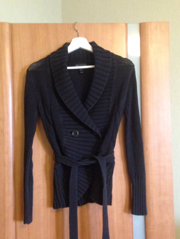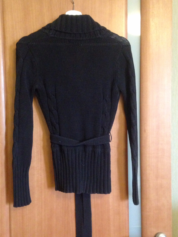 14. Черная вязанная кофта. Очень теплая. Состояние среднее, цвет поблек после стирок. Но под куртку или пальто наверное еще сгодится.