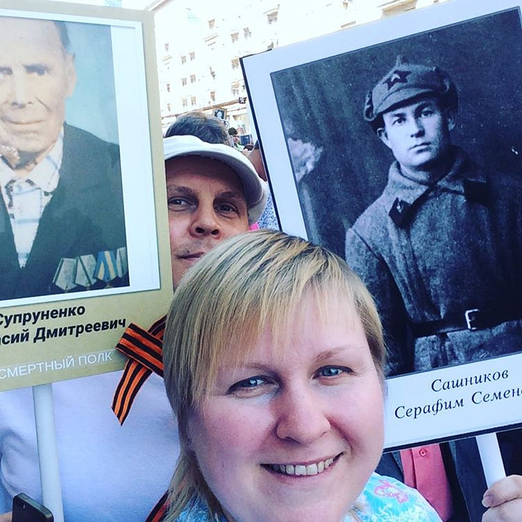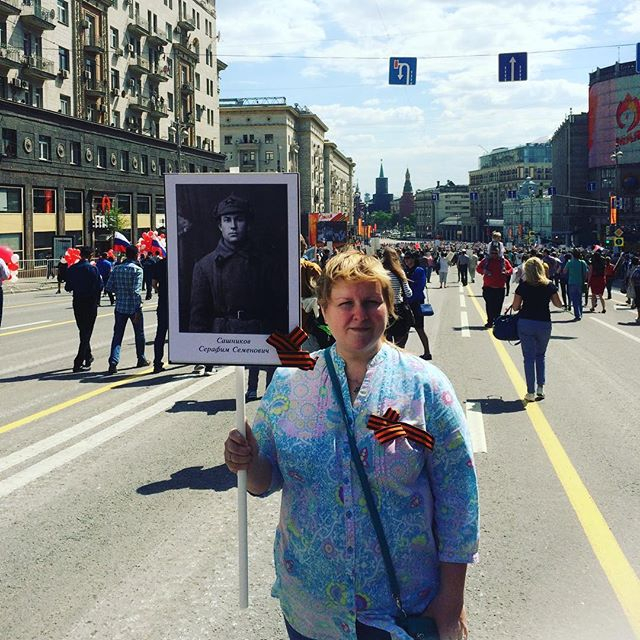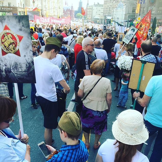 Патриотизм и гордость за свою Родину - вот что чувствовалось на всех улицах города! Слезы радости и безумные эмоции были на лицах абсолютно всех людей! Ощущение было, что весь город вышел поздравить дорогих ветеранов и принять участие в бессмертном полку! Он был нескончаем....и как приятно было наблюдать за всем этим, и сразу вспомнилось пророчество Ванги: "... И встанут мертвые в один ряд с живыми..." Это действительно выглядело очень мощно и в то же время трогательно. Незабываемые ощущения.Трогало до слез и мурашек.Наши дед и прадед с нашей помощью прошли по красной площади!)В этом году оставили малявок дома и пошли с мужем .На следующий год обязательно пойдем всей семьей!