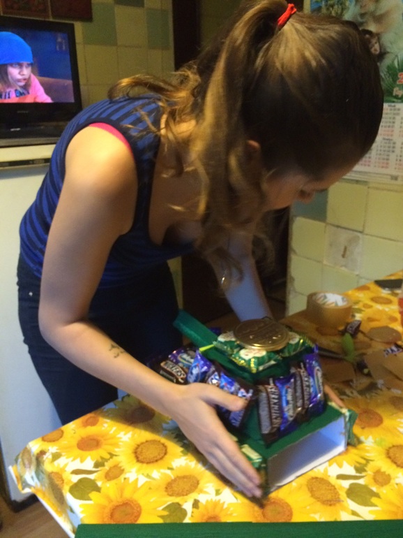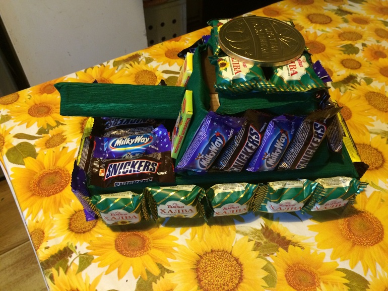 Вот такой сладкий подарок сделала Анюта Олежке , конфетный сладкий танк.