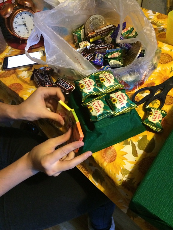 Детки многодетных семейВот такой сладкий подарок сделала Анюта Олежке , конфетный сладкий танк.