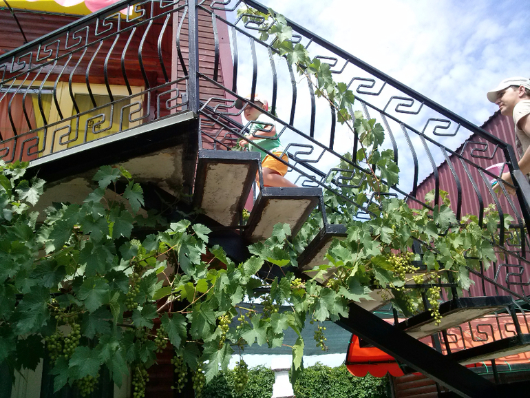 К тому же в Виктории есть кухня на которой можно готовить, а в Виктории нет, но есть кафе. Завтракали мы в своем отеле, обед и ужин готовили в Виктории по очереди со снохой. Иногда ходили кушать в кафе неподалеку или жарили шашлыки, в обоих отелях есть мангалы и укромные уголки со столиками, где можно хорошо посидеть