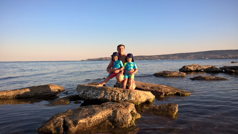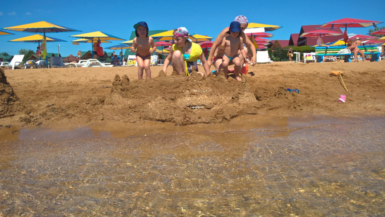 Но потом поняли , что это круто! Каменная гряда защищает от волн и у берега почти всегда тихая вода. У детей есть лягушатник, в котором они играются, в одном месте,где немного поглубже, даже могут понырять и поплавать. Иногда мы одевали им нарукавники или жилеты и плыли на глубину. В районе каменной гряды и за ней водится много живности, конечно не как в Египте, но тоже интересно поплавать с маской и ластами.