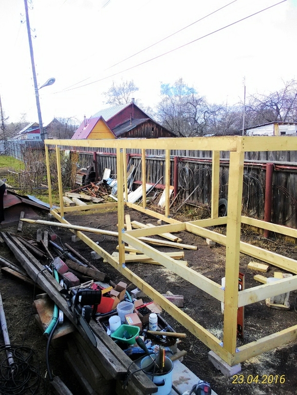 Домострой многодетной семьи (дом и уют)Заметила месяца 3 назад, что муж стал засиживаться у планшета.Он у него большой.Раньше придёт с работы, поест и в телек уставится. Надо сказать, что он работает часов по 12, поэтому я к нему не пристаю. Так вот тут приходит, спрашивает включен ли интернет и сидит.А меня любопытство распирает.Будете смеяться, я всё конечно ожидала, ну что титьки может разглядывает, на форуме зависает. Я заглянула, а там курица. Короче муж загорелся идеей завести на лето кур, чтобы яйца свежие были, чтобы дети хоть живность какую видели. Сначала хотел купить курятник.Говорю нифига.Сам делай.Дорого.Сидел пыхтел, читал, изучал.Составил проект.Уехал на майские.Делали с дедом они дня 2.Потом что-то подкупали. Вчера там марафет навели и поехал сегодня с утра за курочками.Поскольку яиц захотел уже вот прямо сейчас, ждать то, пока с цыплёнка кура вырастет, мочи то нет.Накупил кур.Привёз.Звонит.Говорит, что оклемались уже и 3 яйца снесли )))). Ах да, он ещё за кормом им ездил аж в Митино.С утреца перед работой по всем пробкам.Я честно такого рвения не ожидала.А ещё привёз несколько книг.Сидел их читал.По науке хочет вникать в этот процесс.Я так чувствую, что когда на пенсию выйдем, скучать нам точно не придётся.Идеей заразил свёкров, в результате они с охотой подключились к этому вопросу.А ещё и тётушка мужа, как услышала, так теперь зимний курятник строить начала.Ну и фото, что он мне прислал.Я же ничего ещё не видела )).