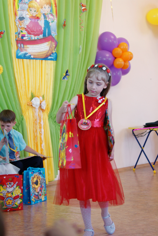 Вот такая у нас была доченька на выпускном. Сама себе выбрала платье, прическу))
