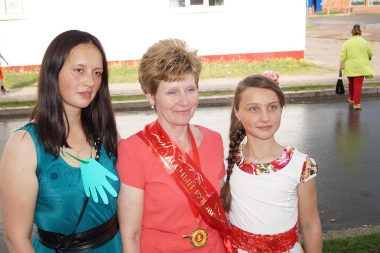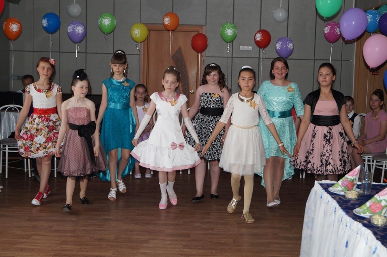 Поздравляю с выпуском, дочка красавица :-) Правда, девочки так взросло выглядят! Наш класс так выглядел после окончания 9 класса!