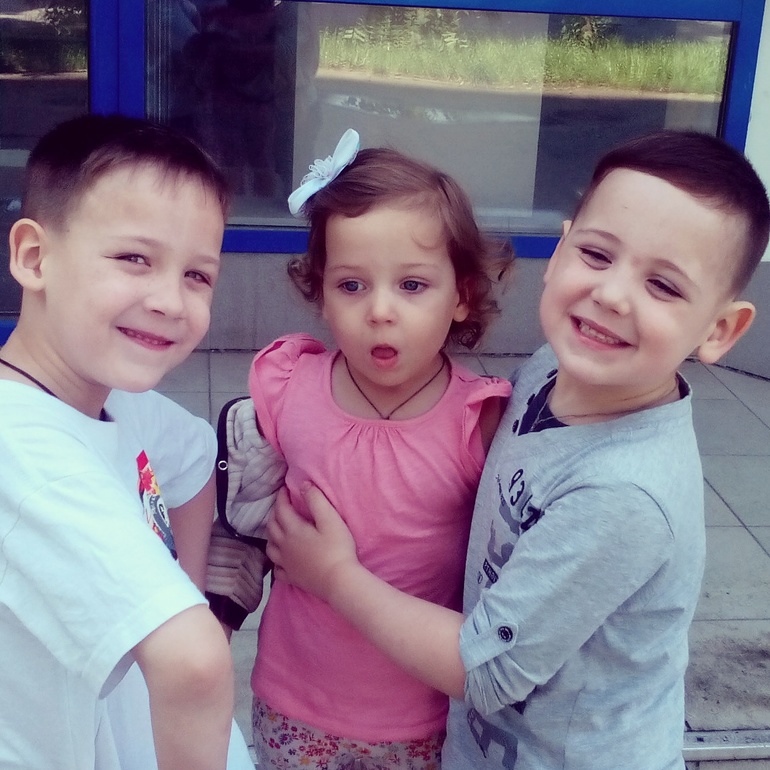 Ну, Колю с Настей я таки поймала нормально. А сережка так и не захотел мне по улыбаться