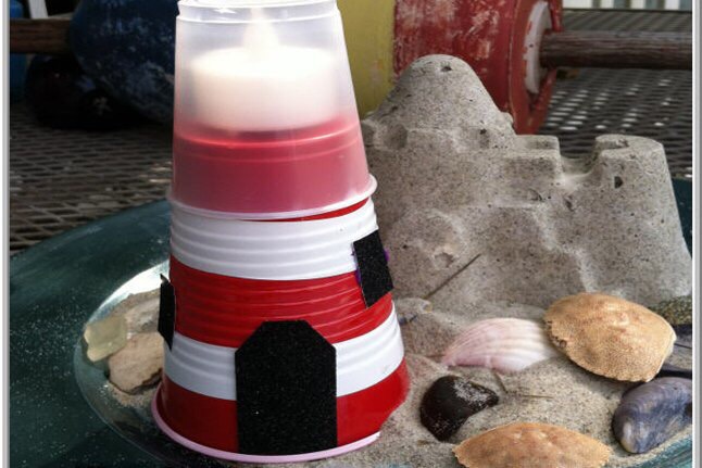 Поделки и развивашки (НЕ продажа)ЛЕТНИЕ ПОДЕЛКИ. Прекрасная поделка "замок из песка" можно дополнить вот таким самодельным маяком. Сделан он из двух пластиковых стаканчиков и безопасной светодиодной свечи.