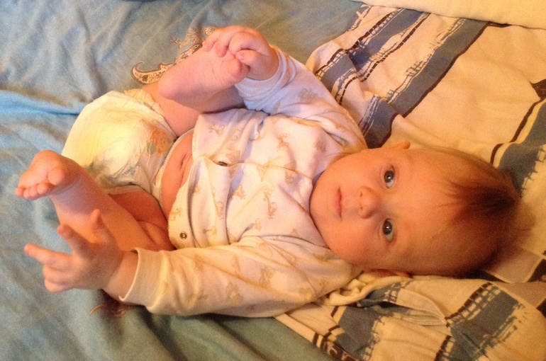 Вчера зафиксировала новую умелку): Гришуткин нашел у себя ножки))). Правильно, не все же только маме играться с этими сладкими розовыми пяточками))