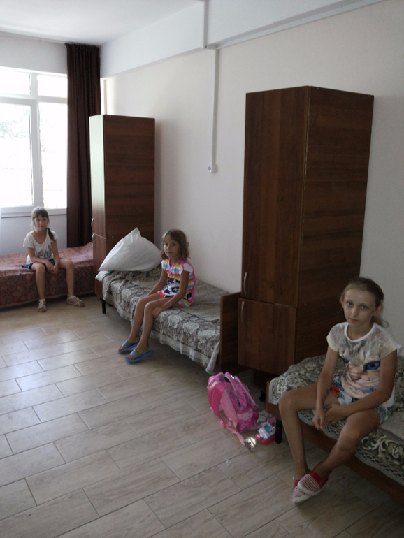 Территория лагеря огромна, Приморский и Солнечный рядышком, Приморский ближе к пляжу. Корпус Солнечный мне понравился внешне, ну а внутри светло, уютно.Постоянно то тут, то там трут уборщицы стены, полы, но всем известно, чисто не там где убирают...в комнатах, конечно, жуть.Если у младших ещё порядок, то старшие обнаглели вконец.Но тут уж дело воспитания((Была в той самой комнате, в которой живёт моя старшая.Пятно замазанное(я писала, что комната сырая и плесень),расплывается и проявляется(в след. заезд ,думаю, опять закрасят)Плесень это или нет, не знаю,но стена сырая-это точно.Сеток на окнах ни у кого нет.По комнатам летают комары и осы.Кровавые следы прям по стенам размазаны.В основном, такая беда на первом этаже.Балконы есть только с той стороны, где главный вход, дети сушат вещи на перилах и (у кого есть)на верёвочках.Я своим давала верёвку и прищепки).С другой стороны балконов нет.Место для сушки белья-дверца шкафчика или палата соседей.Комнаты, где пятеро детей-нормальные, а где трое-очень тесные.С/у вроде нормальный, вода горячая всё время.На четвёртом этаже вечером напор слабый, они либо днём моются, либо в общем душе. В столовую не попала.Магазин есть.Старшие ходят сами, младшие с вожатыми.Выбор большой, но при том, что есть мороженое, печенье, сушки, соки, вода простая ...дети выбирают чипсы, газировку, сухарики.Сама видела.Цены как в Магните Анапском. Пляж очень большой, родителям туда нельзя.Я с младшими отдыхала в Витязево, 10 минут по кромке моря и мы "у цели"))Посмотрела на их навес.Такое чувстсво, что простынка на каркас натянута. Мы купались, а лагерь сидел на берегу-штормовое предупреждение. Я приехала, когда мои уже 2 недели пробыли в лагере и увидела абсолютно БЕЛЫХ детей(другие тоже).Взяла их на 2 дня с ночёвкой.Подрумянились. Вожатые в целом милые девушки и парни, но ОЧЕНЬ молодые))Лет по 18-20.Про наших скажу-ответственные, про других не знаю.Вожатые моим понравились))Про телефоны-мои пожаловались, что когда вожатые забирают, бросают в коробку и телефоны стукаются друг об дружку-бьются стёкла.Действительно, стёкла битые, написала прям там заявление и телефон был у моих, не забирали. Без проблем забирала детей за территорию, писала заявления.А на территории вообще можно находится с утра до 20.00.Паспорт нужен))Обещан был футбол, но как оказалось, играют только мальчики, девочки чуть тренируются.Средняя пошла в медиагруппу, говорит, скучно.Кулеры и фонтанчики с питьевой водой есть.В кулерах вода быстро заканчивается.Еда как в школьной столовке, чаще всего холодная. вожаьтые говорят, они сами накрывают при детях.Кстати, на сайте пишут, что есть кружки, но детям об этом видимо не сказали.