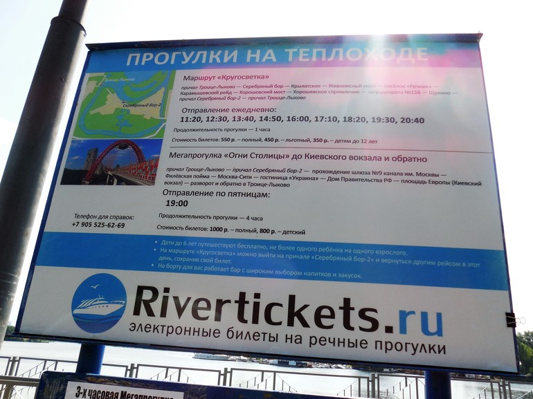 Мы сегодня на нем катались от пристани Троице-Лыково!На сайте билет стоит 390 р,на причале многодетным льготный 450 р.