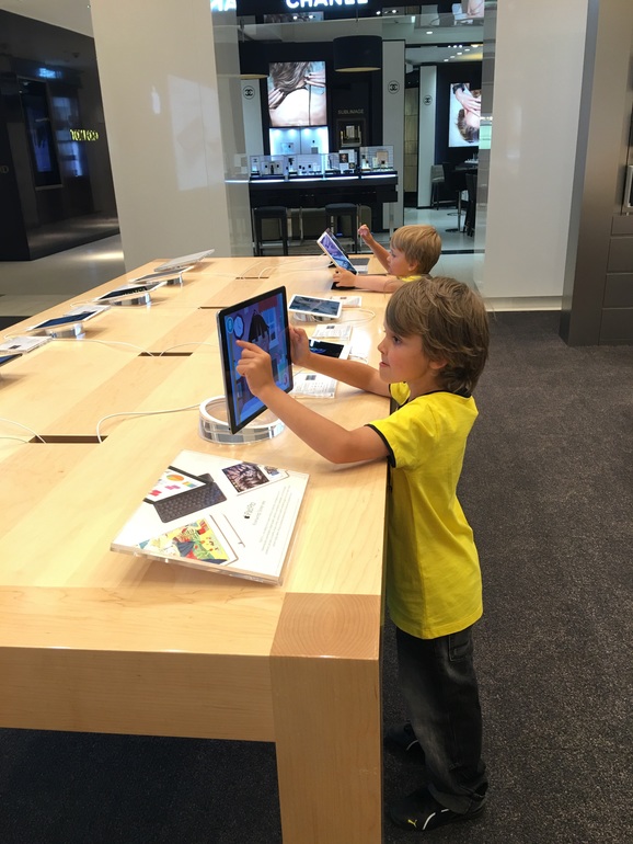 Ну и финальным аккордом стало посещение Apple Store. Дети дома никогда не играют в компьютерные игры. Но иногда я привожу их в этот магазин и они.......😉😉😉😉