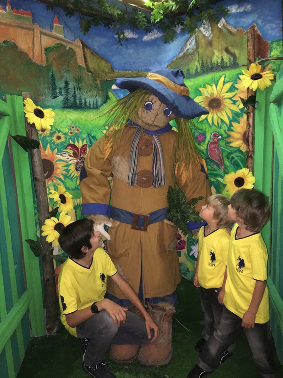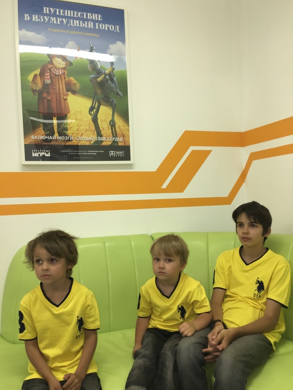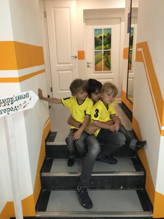 Сам квест. Возраст 4-6 лет. Старший был помощником . Несколько комнат, очень красиво и интересно оформлены . Фотография где дети со Страшилой - это одна из комнат, где потом делают фото. Задания простые . Именно для маленьких. Квест короткий.Минут 30-40. В комнатах жарко . Я переодевала детей.