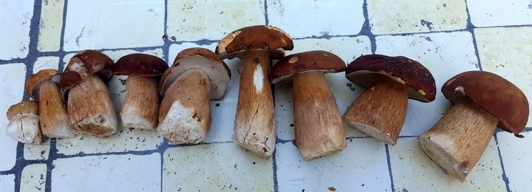 Это белые) Еще полно подберезовиков, лисичек, есть подосиновики. Набрали много, это я только беленькие сфотографировала)