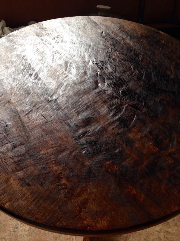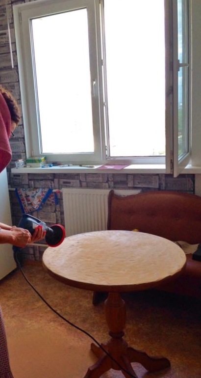 Мрачно смотрим на старый некрасивый стол. Гуглим. Узнаем слово "цикля". Идём за циклей. Хреначим стол циклей. Мрачно смотрим на стол. Громко не любим Гугл, циклю и руки из жопы. Берём тёрку! От отчаяния. Хреначим стол теркой. Громко сомневаемся в своих интеллектуальных способностях.