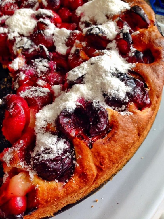 Печём вишневый пирог. Сидим и едим, довольные. А как вы проводите выходные?