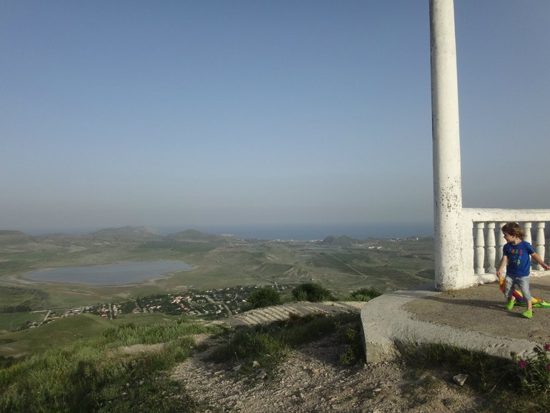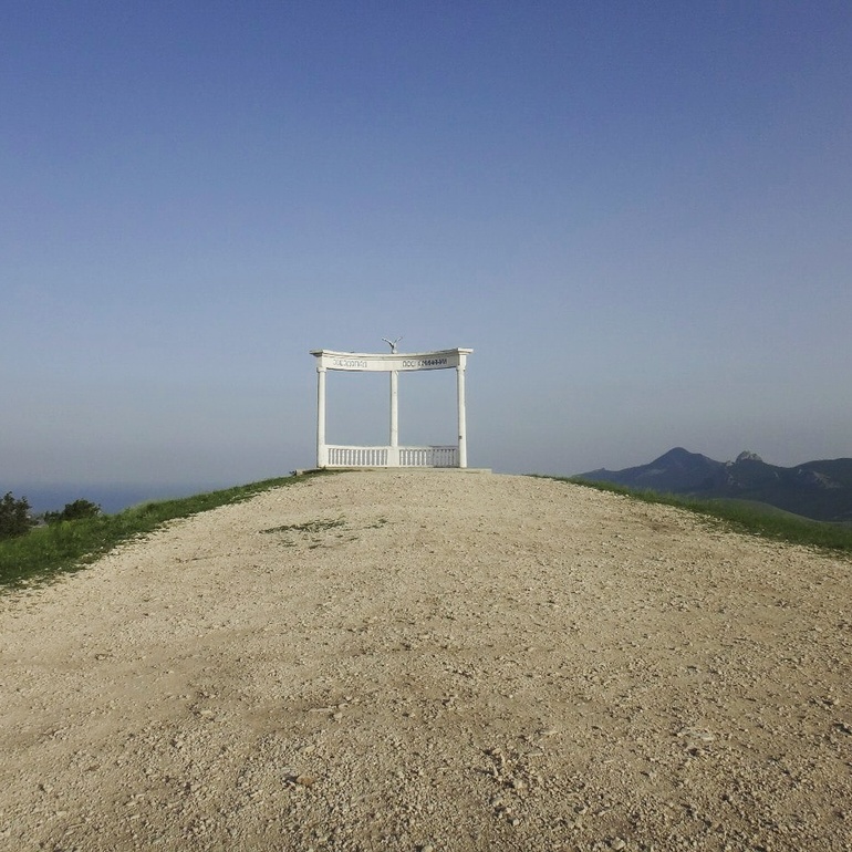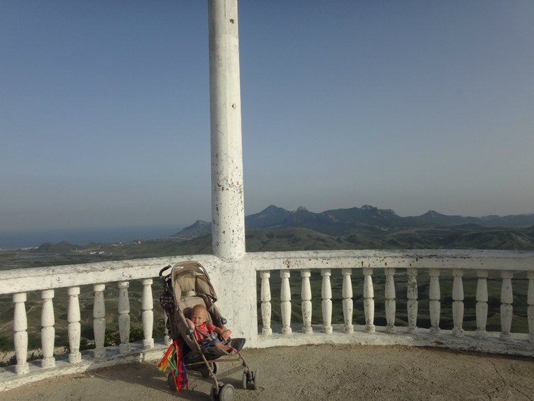 Это беседка на пике горы между Кокебелью и Судаком, один недосаток- дорога плохая, около 2 км идти пешком. Мы хотели попасть на закате, но слишком поспешили, да и дети не склонны покойно стоять на месте и созерцать природу. Поэтому получилась прогулка вверх-вниз, но все остались довольны.