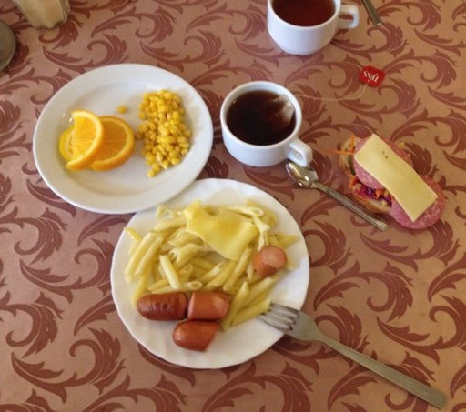 Проснулись/умылись пошли завтракать. Кире шведский стол весьма понравился))