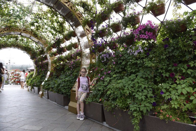 На этом мы покинули кидзанию и пошли на фуд корт есть. В моих планах было оттуда пойти на красную площадь. Но сначала была площадь театральная, где проходит что то связанное с цветами.