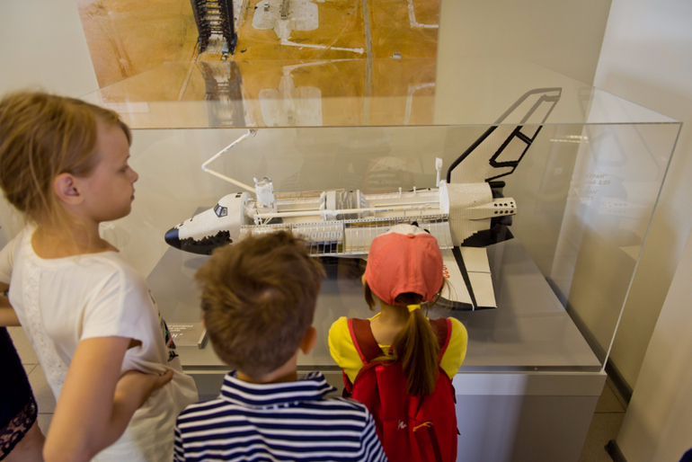 Поскольку на этот день у нас еще было посещение Бурана, я аккуратно (ценой 100р магнита из заламинированных крыльев), извлек Киру от бабочек и повел дальше. Буран, собственно, находился прямо на той площадке, где Кира разгружалась все дни, но на мои вопросы рядом сидевшим родителям, все говорили что он закрыт для посещения. Нифига. Открыт, хотя и недешев (500вз, 250дет), но мы как многодетные прошли бесплатно