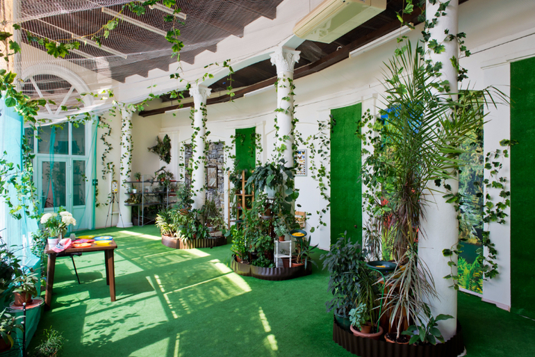 Помещение небольшое, затянуто сеткой, чтоб бабочкам было удобнее садиться
