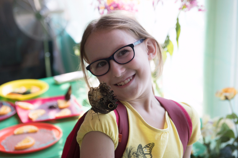 По названиям не запомнил никого - меня бабочки не интересуют, поэтому сел на скамеечку и только время от времени щелкал дочь.