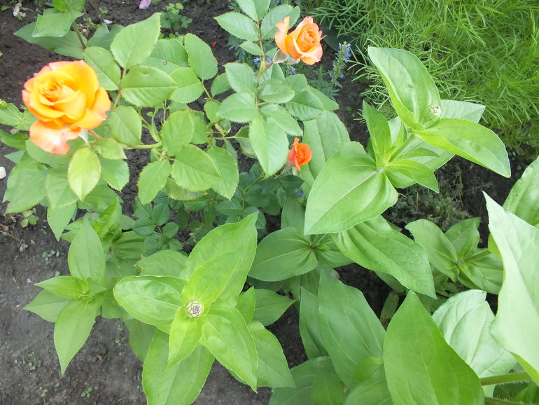 В самые страшные моменты я каким-то шестым чувством поняла, где мое спасение. Земля! У меня ведь есть теперь СВОЯ земля! Помню как однажды весенним днем я среди строительного мусора и прошлогодней травы обнаружила росток пиона. Пион достался мне в наследство вместе с домом, но был безжалостно затоптан и завален кирпичами и досками во время нашего спешного ремонта. Я кинулась спасать пион, потом откопала еще и аспарагус и незаметно втянулась. Перед домом сама разгребла весь строймусор, вскопала и сделала клумбу. Сажала цветы уже поздно, т. к. не было заготовлено никакой рассады. Понимаю, что хвалиться нечем, но этой клумбе нет еще и года, еще все будет переделываться и пересаживаться. Но уже в этом году шикарно цвел пион (не сфоткала), расцвела роза, купленная маленьким саженцем. Вот она