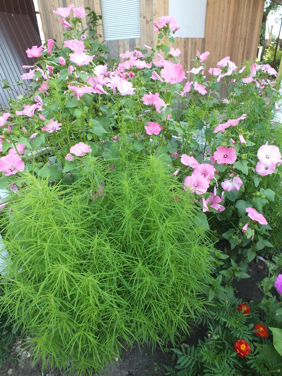 Вот лаватера и кохия. Семена купила наугад, совершенно не представляя что такое "Лаватера". В итоге именно этот цветок "вытянул" мою клумбу.