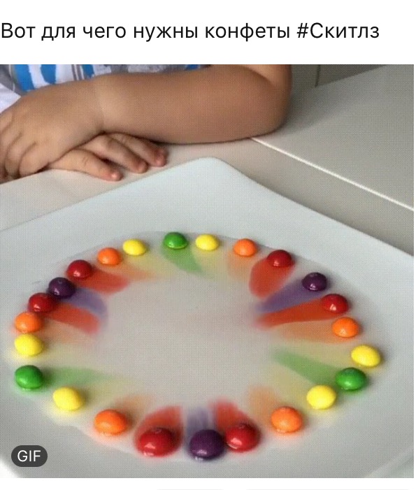 Берём конфеты яркие , как пуговки )) выкладываем на бумагу( можно тарелку не глубокую) кружок , немного воды наливаем в середину круга и наблюдаем)))