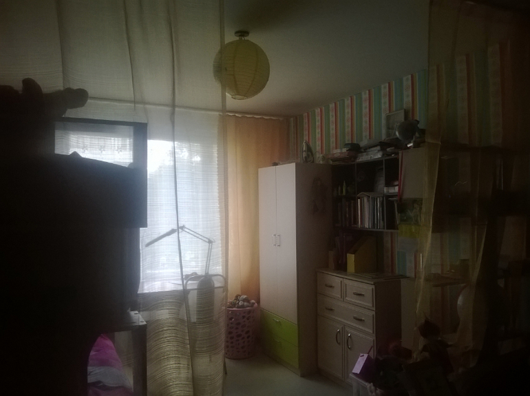 а как?светлые обои?честно, вообще б комод и полку убрала куда-нибудь. Заставлено все как-то((Это притом самая светлая комната в квартире(