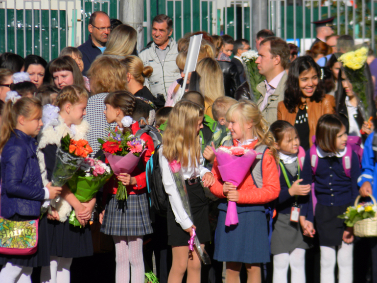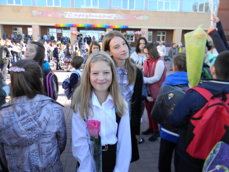 Старшая пока не при параде.Ей на линейку позже.В школе 2100 учеников, линейки в два захода)
