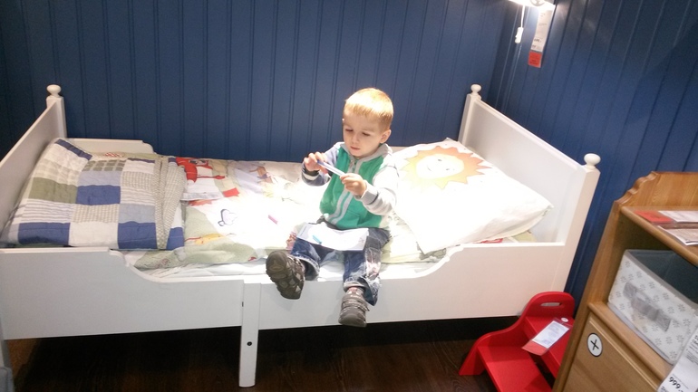 В ИКЕА увидела двухярусную кровать с металическим каркасом и нейлоновой сеткой в качестве бортиков и высота гораздо ниже, чем все то, что было до этого.