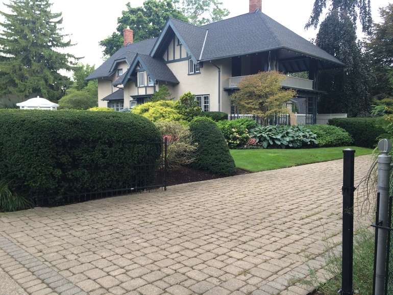 Открытые ворота. Дом за несколько миллионов долларов. Без камер. Без охраны. с открытыми воротами. Очень странно... Ниже еще один, даже без символического забора.