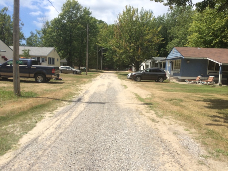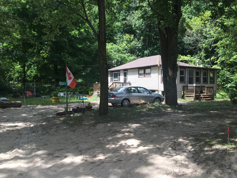 Улочка, в конце которой тупиковый - наш дом. Сразу совершенно поразило отстутствие заборов. Границы участков невидимы, типа "вот, видишь, от этой сосны уже соседский пошел, а у этого кустика еще наш"
