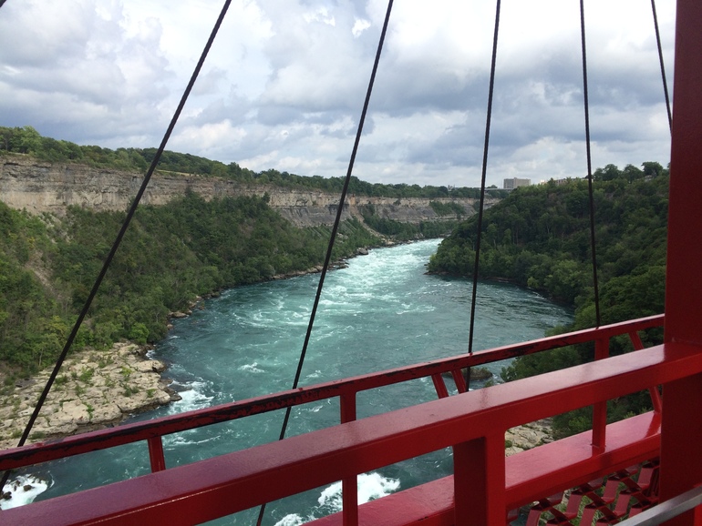 Ездили, конечно, на Ниагару, впечатлило. Ниагарский водопад - самый большой в мире по количеству воды. Вообще по Ниагаре проходит граница между Штатами и Канадой, в обозрении несколько мостов, по которым можно перейти ее