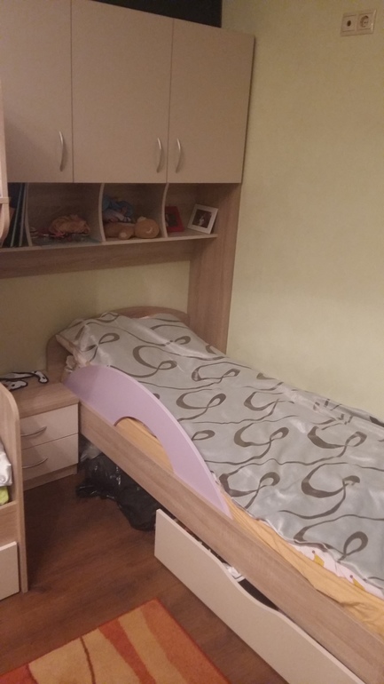Правая стена до половины комнаты очень холодная, поэтому кровать туда ставить боязно. А так, получается узкий проход между стеллажом и большой кроватью?!