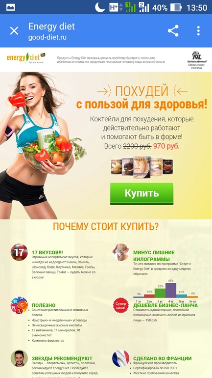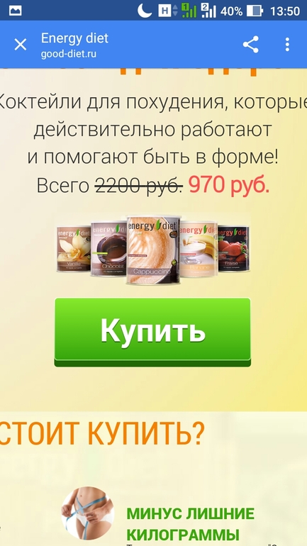 09 сентября 2016 года черт меня дернул я заказала через интернет-сайт коктейль Energy Diet вкус шоколад