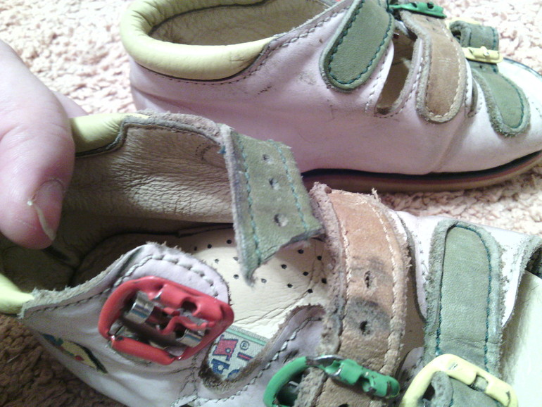 Таши орто 21 размер, у правого разорван ремешок, в принципе можно починить. Но если ножка пухлая, то держится и на двух оставшихся