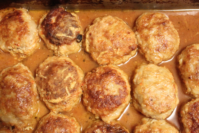 Это обычные котлеты, просто я их слегка обжариваю, а потом делаю подливку, накрываю фольгой и на пол часа отправляю в духовку)