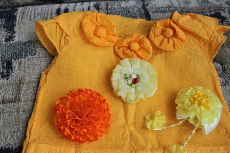 вот, например, сшила я Алине платье еще весной, а мы его до сих пор не одели потому как не могу найти бантики подходящего цвета